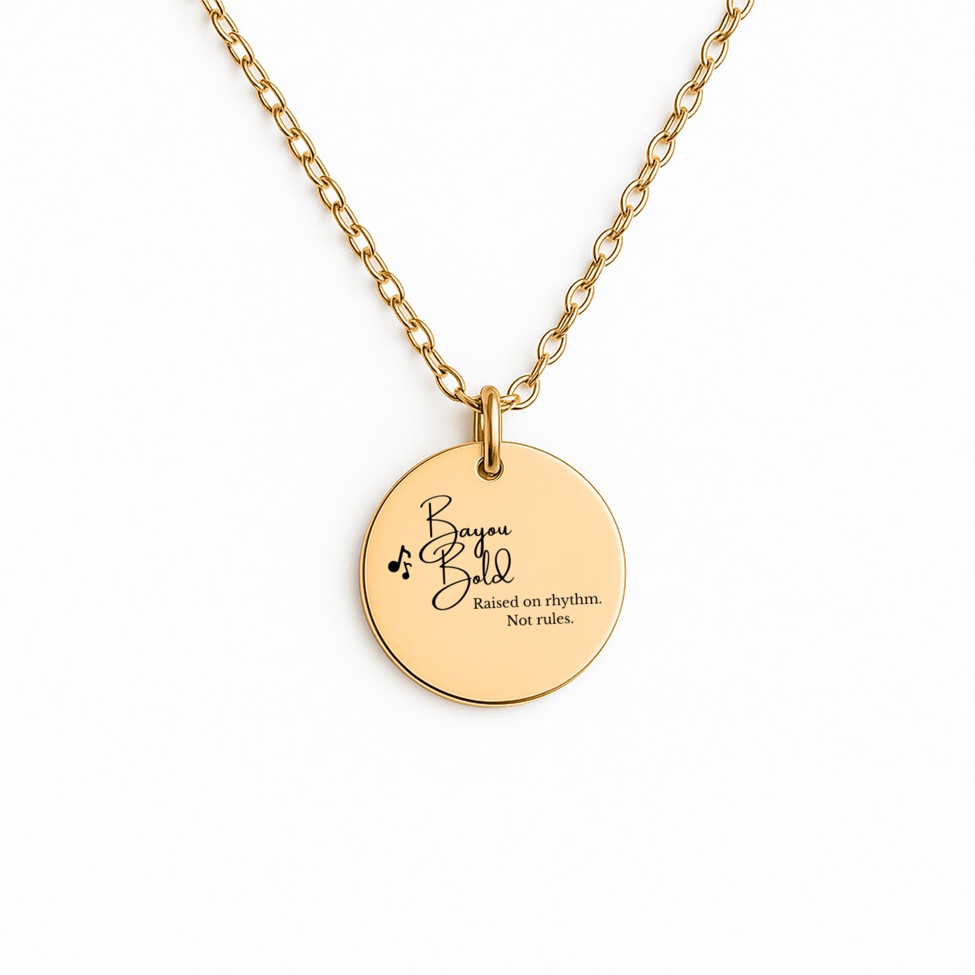 The Bayou Bold pendant channels the quiet strength of women who carry heat in their bones and history in their posture. Etched with a poetic phrase and finished in radiant gold, it speaks to resilience, rootedness, and rhythm you don’t have to announce. This is SoulBuilt — jewelry made for presence, not performance.
